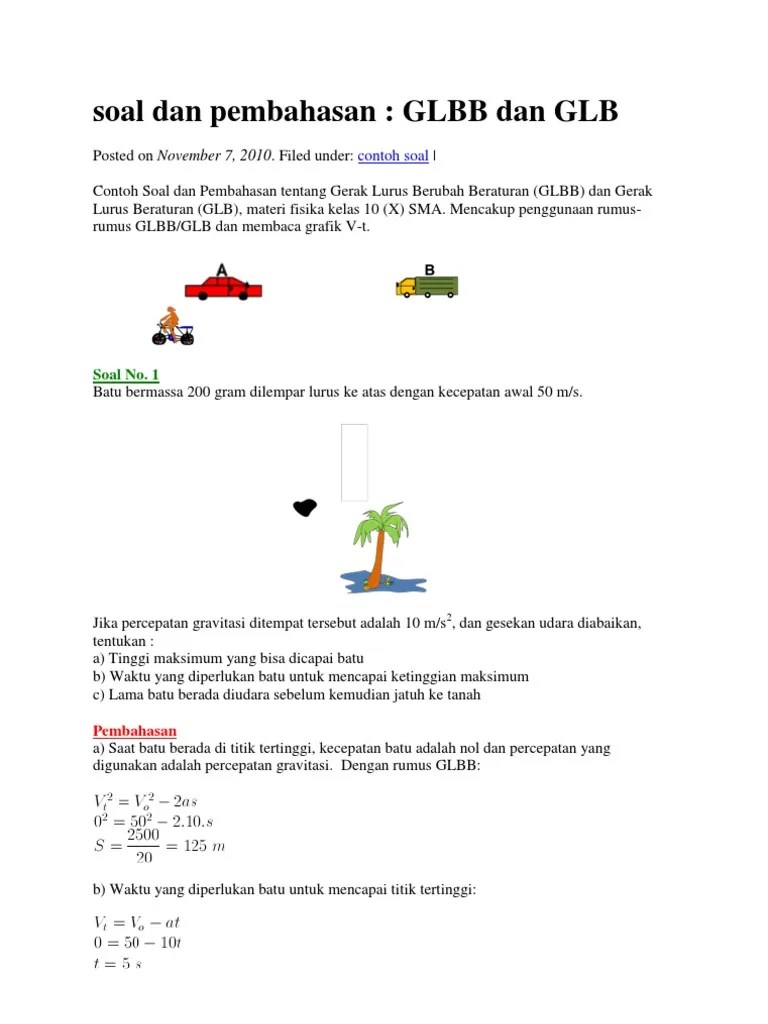 Apakah kamu sedang mencari pembahasan mengenai teori gerak lurus beraturan? Berikut kami sajikan beberapa contoh soal glbb . Di sini, kami memiliki uraian lengkap tentang pembahasan tersebut. Kunci dan pembahasan soal ini bisa dilihat di www.zenius.net dengan memasukkan kode 5179 ke menu search. Artikel ini membahas materi gerak lurus beraturan pelajaran fisika sma kelas 10. Gerak lurus berubah beraturan adalah suatu gerak di lintasan lurus dengan percepatan konstan. Gerak vertikal ke atas dan gerak jatuh bebas, materi fisika kelas 10 (x) sma. Copyright 2016 zenius education k13 revisi antiremed . Mobil melakukan gerak lurus beraturaran kemudian gerak lurus berubah beraturan. Artikel ini membahas materi gerak lurus beraturan, pelajaran fisika sma kelas 10. Materi gerak lurus berubah beraturan atau glbb masuk dalam pelajaran fisika. Sebelum memahami apa itu gerak lurus beraturan, sebaiknya kamu memahami . Rangkuman materi kinematika gerak kelas 10.